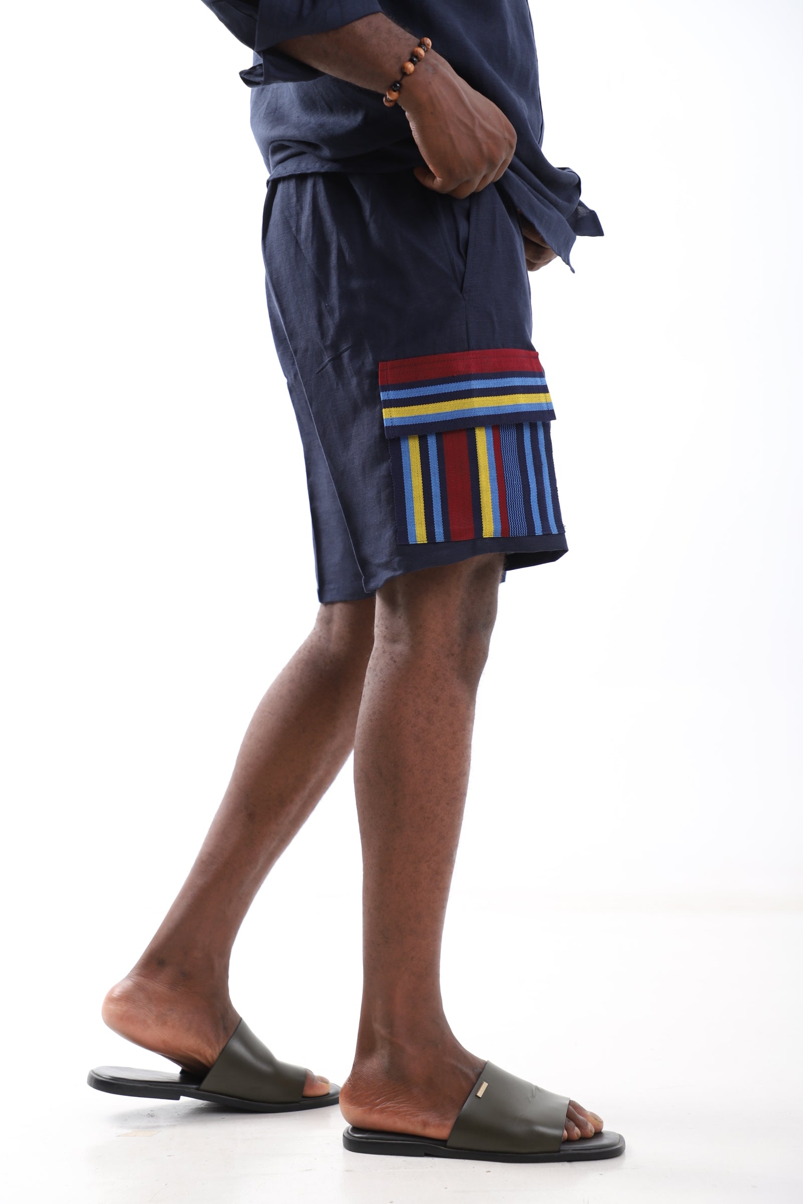 Refined, effortless, and undeniably stylish—the Midnight Luxe Utility Shorts are designed for the modern man who values both sophistication and functionality. Crafted from premium navy-blue linen, these shorts offer a lightweight, breathable fit that keeps you comfortable all day.